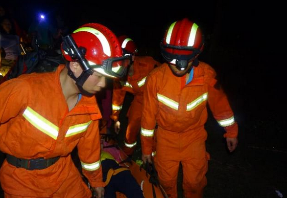 消防救援人員利用救援繩索和防墜器,順著八米的長拉梯下到地下室,利用救援擔架、救援繩索,將其固定好之后,利用拉梯救助被困人員升上地面。